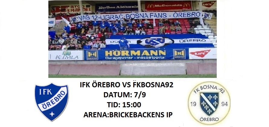 Nu får Bosna ta nya tag efter segern senast. Nu tar man emot Nora på Örnsro. Ett lag som slåss för överlevnad. Ett lag som slåss för överlevnad är aldrig lätt att möta, så full fokus gäller. FKBosna92 Laget befinner sig i en strålande form, speciellt efter den senaste matchen som man vann med 6-0. Man har sju poäng tillgodo i serieledningen och fem matcher kvar att spela. Så varje match som är kvar blir ännu viktigare än tidigare. Man måste ha full fokus eftersom det kan vända väldigt snabbt i fotboll. Nora-Pershyttan BK Laget har ryckt upp sig rejält, även om man förlorade senast. För tillfället ligger man på kvalstrecket, men det är ytterligare två lag på samma poäng. Så alla poäng man kan få med sig blir livsviktiga. Man kommer inte att ge upp och kommer att kämpa in i det sista oavsett vem man möter i serien. Matchen Det blir nog ingen större skillnad i spelet än senast. Nora-P kommer överlåta bollen till Bosna och fokusera på det man är bra på omställningar. Ska Bosna fortsätta sitt segertåg så måste man spela med med samma aggressivitet som tidigare. Nora kommer inte att lägga sig bara för att man möter serieledaren. Utan det blir tvärtom man kommer slita ännu mer för vinst. Man är i stora behov av poäng, men man vill även ha revansch för förlusten på hemmaplan, tidigare denna säsong mot Bosna. Det blir en sevärd match eftersom det gäller så mycket. Vinner Bosna så är man väldigt nära seriesegern. Skulle Nora vinna så har man större chans till att hänga kvar i div.4. FKBosna92 vs Nora-Pershyttan BK Datum: 3/9 Tid: 18:15 Arena: Örnsro IP Tipps: Bosna fortsätter sitt segertåg och vinner med klara 4-0 Målskyttar: Sepicx2, Ralle och Mirza C HAJMO BOSNO!!!
